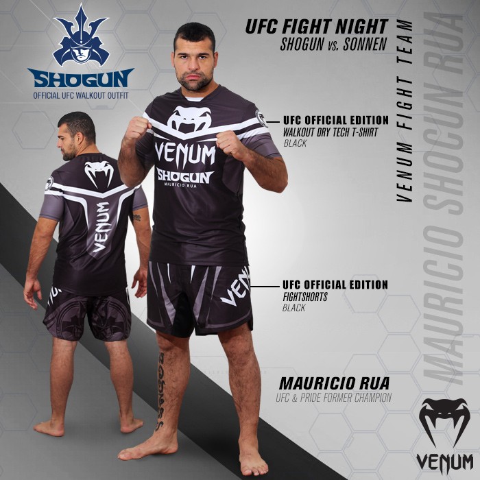 Pour ce combat, Venum nous fait encore plaisir en proposant un très beau bundle « Shogun UFC Edition » composé d’un t-shirt et d’un fightshort déclinés en deux couleurs : blanc et noir.
