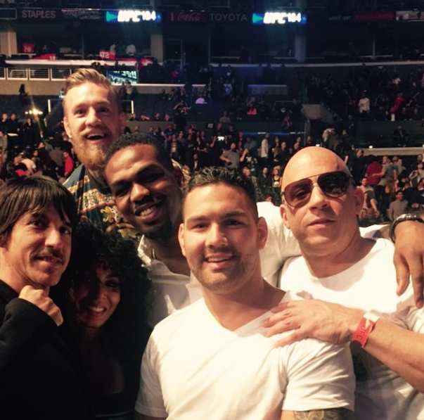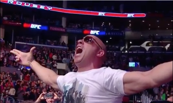 Lors de l’UFC 184, on a pu apercevoir Vin Diesel venu encourager Ronda lors de son dernier combat. Il a posé avec d’autres champions à l’image de Chris Weidman et Jon Jones et n’a pas caché sa joie lors de la soumission de Ronda sur Cat !