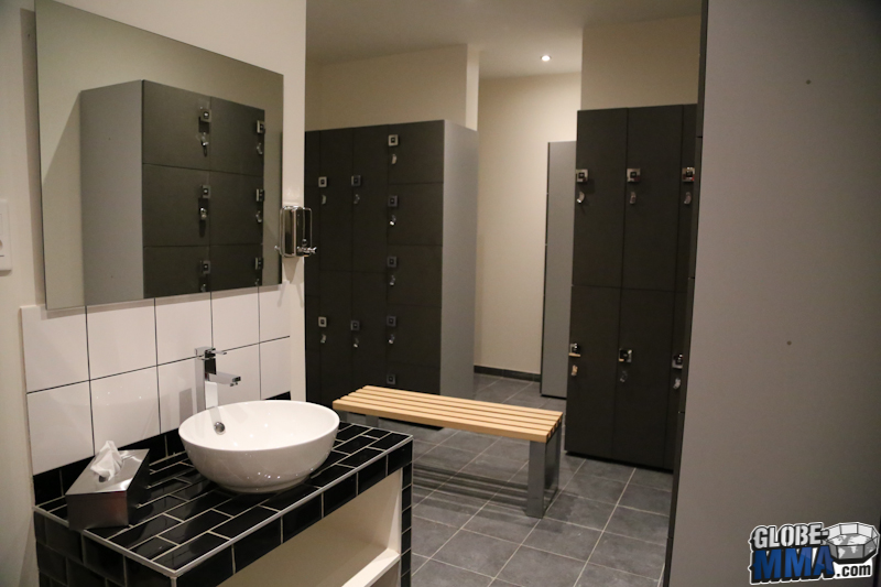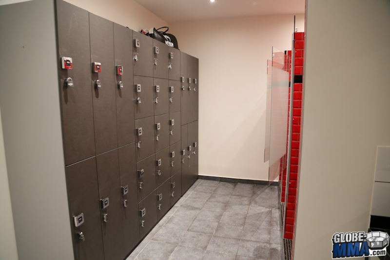 Un petit tour du côté des vestiaires. Encore une fois, le design est très moderne, super propre. Les casiers sont spacieux.