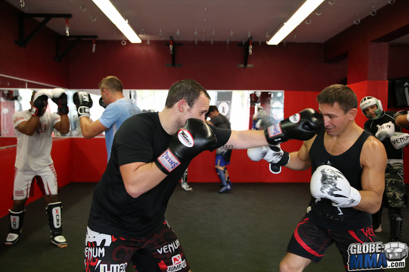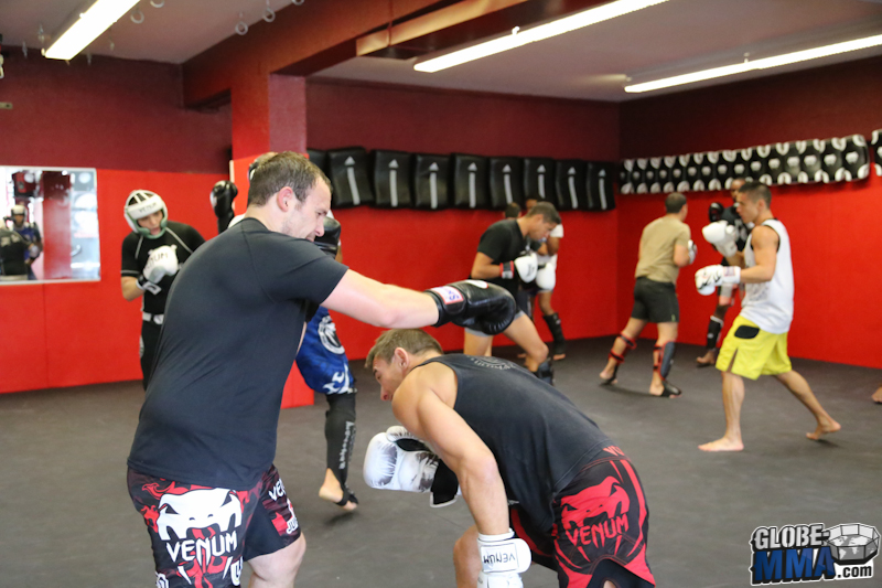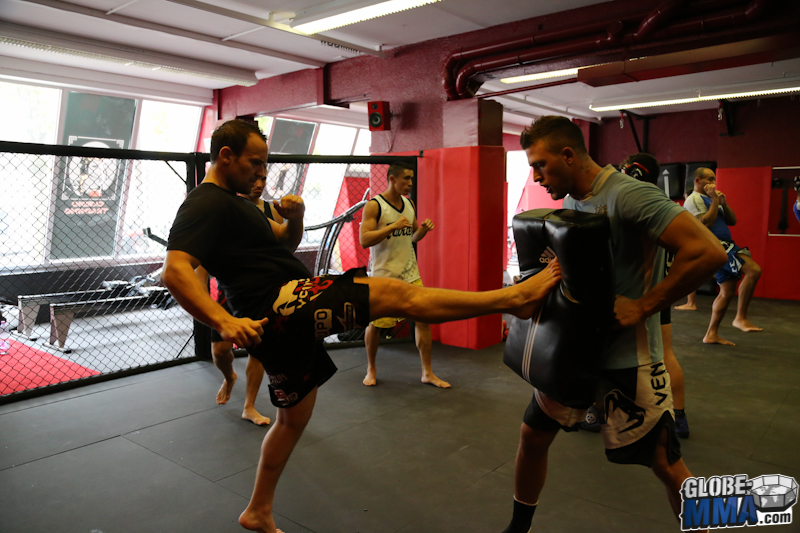 Lors de ma visite, j’ai également testé le cours de MMA dispensé par David Baron. Pour ceux qui ne le connaissent pas encore (bouh!!!), il est un ancien combattant de MMA (16-3) qui a combattu à l’UFC, au Pride, au Cage Warriors, au Shooto. A noté qu’il a gagné deux fois contre Dan Hardy et a affronté Takanori Gomi au Pride alors qu’il était au sommet de sa carrière. Aujourd’hui, il enseigne le MMA aux côtés de Loïc Pora au Platinium.