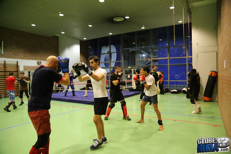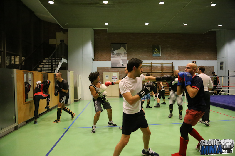 Une première partie en pied-poing avec des exercices aux gants.