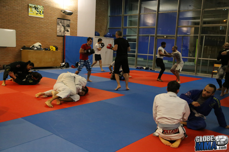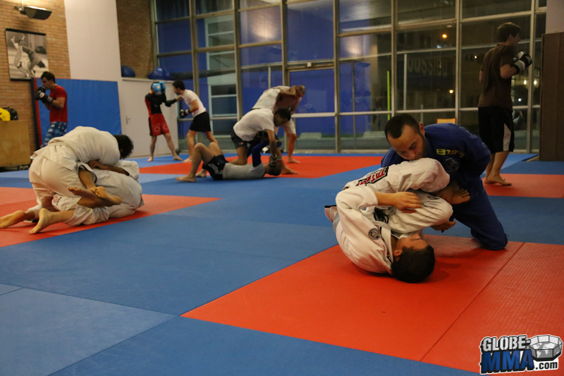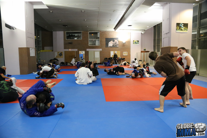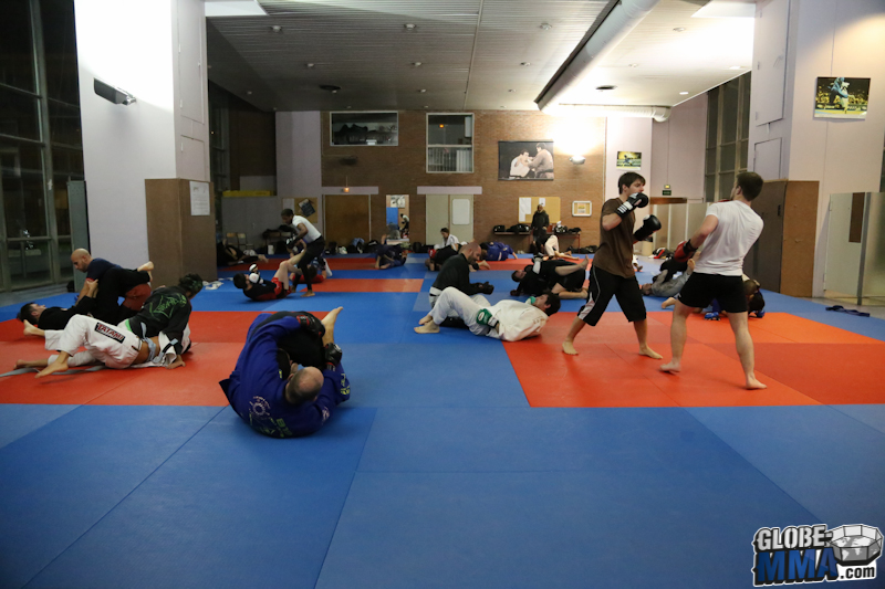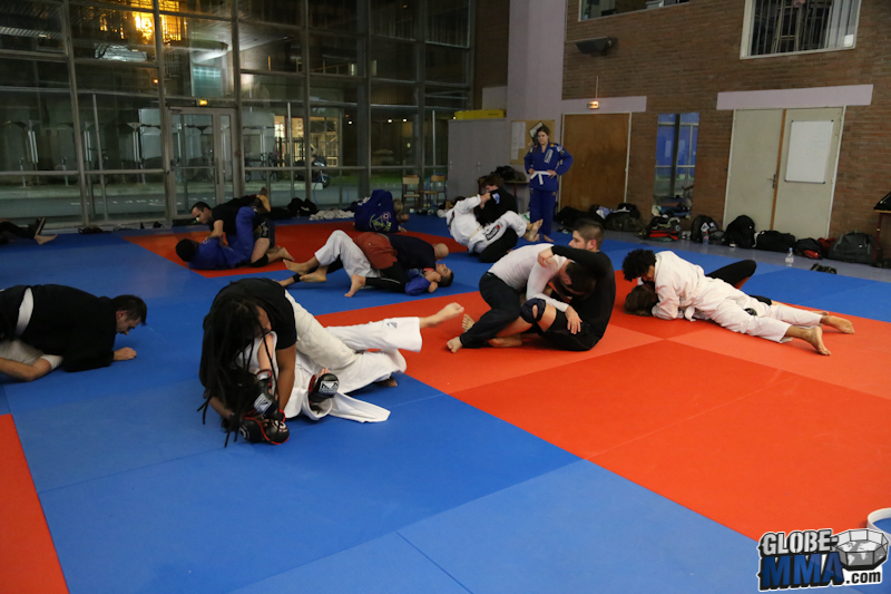 Après la partie pied-poing, direction la salle de tatamis pour la partie JJB / Grappling. Comme vous pouvez le voir sur la photo ci-dessous, les élèves viennent en gi ou no-gi selon leur préférence.