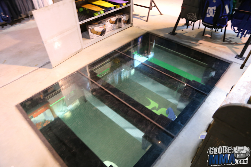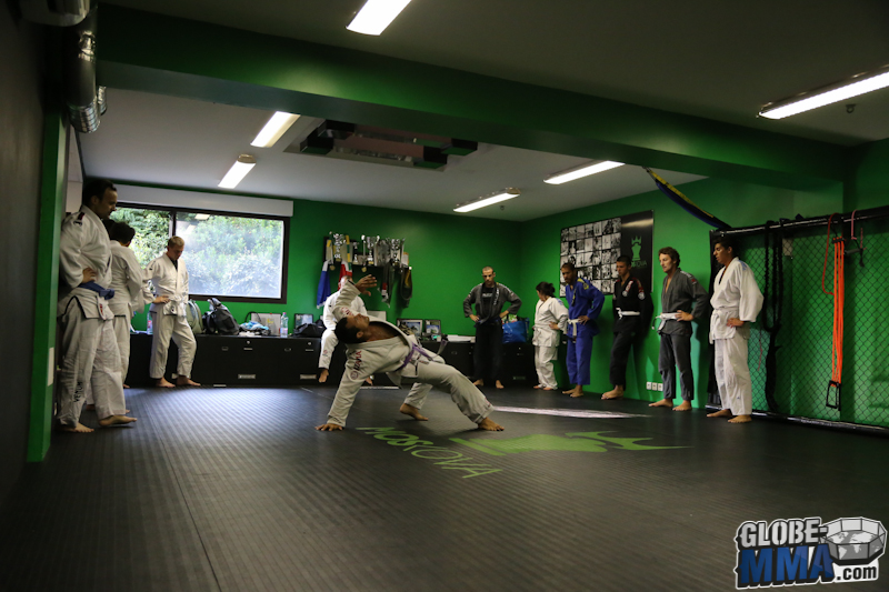 L’académie est située juste en dessous du surf shop boardriders Quicksilver. Comme vous pouvez le voir, quand je dis qu’elle est situé en dessous c’est au sens propre du terme. Dans une partie de la boutique Quicksilver, on peut y voir d’ailleurs la salle d’entrainement au travers d’un sol vitré (ci-dessus). J’ai trouvé ça super sympa ! Ici, le surf et le JJB se marient très bien.