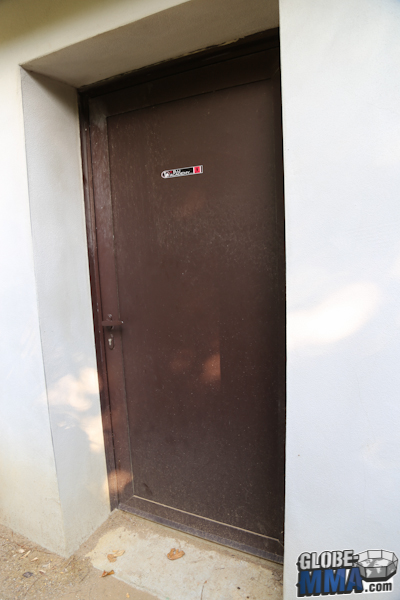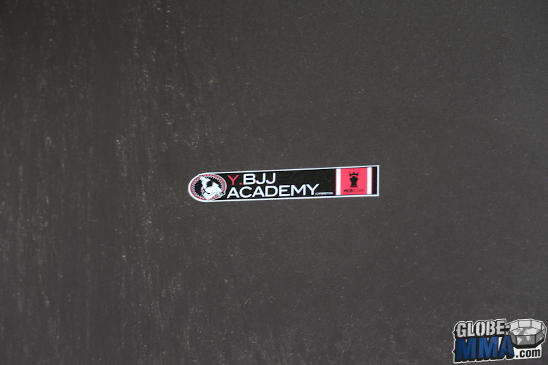 Pour se rendre dans l’académie, il faut emprunter un chemin bordé de plantes vertes situé à droite du shop. L’entrée est sobre, une simple porte sur laquelle on y trouve inscrit Y.BJJ Academy avec le logo de la marque Moskova. Le club se veut discret étant donné qu’il est réservé à un cercle « privé ».