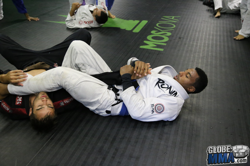 Fin du cours des enfants, c’est au tour des adultes de monter sur le tatamis. Environ une trentaine d’adultes viennent s’entrainer à l’académie de Yannick. De nombreux surfeurs professionnels viennent s’entrainer également à la Y.BJJ Academy et même des anciens footballeurs professionnels comme Bixente Lizarazu qui est ceinture violette de JJB.