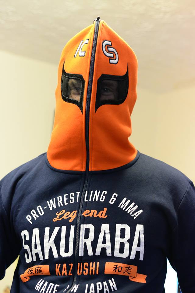 La particularité de ce hoodie est sa capuche zippée masque, la célèbre signature du combattant. Lorsque vous mettez la capuche, vous pouvez remonter le zip et vous vous retrouvez avec le célèbre masque du combattant japonais comme à l’entrée de ses combats. Personnellement, je le trouve très sympa ! Le design est top et l’idée de la capuche très originale. A l’époque du Pride, Sakuraba avait déjà sorti un hoodie avec une capuche zippée masque orange pour lequel j’avais craqué. Je pense que celui là va également faire parti de ma collection dès sa sortie ^^