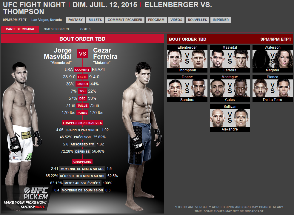 Quels sont vos pronostics pour ce combat ? Rendez-vous sur Kombat Sport pour la France (CanalSat canal 128 ou Numericable canal 160), RDS pour le Canada ou sur l’UFC TV en vous abonnant à l’UFC Fight Pass ! A bientôt sur Globe-MMA !