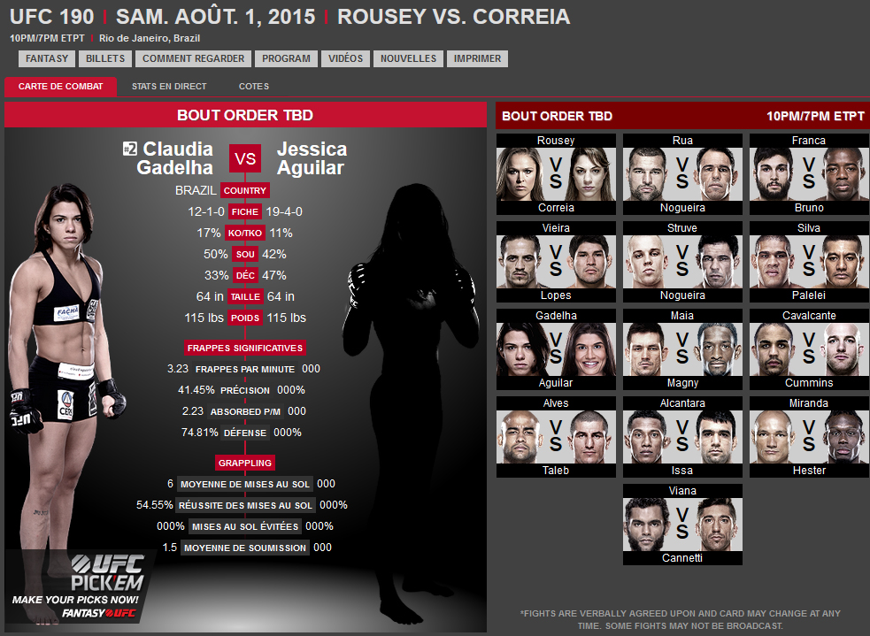 Quels sont vos pronostics pour ce combat ? Rendez-vous sur Kombat Sport pour la France (CanalSat canal 128 ou Numericable canal 160), RDS pour le Canada ou sur l’UFC TV en vous abonnant à l’UFC Fight Pass ! A bientôt sur Globe-MMA !