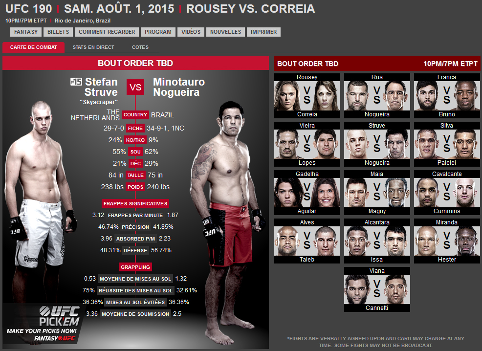 Stefan Struve (29-7) affrontera Antonio Rodrigo Nogueira (34-9) à l’UFC 190 de Rio samedi prochain. Le hollandais et le brésilien sont actuellement sur deux défaites d’affilées à l’UFC, contre Mark Hunt et Alistair Overeem pour Struve et contre Fabricio Werdum et Roy Nelson pour Minotauro. Qui va réussir à s’imposer dans ce combat ?