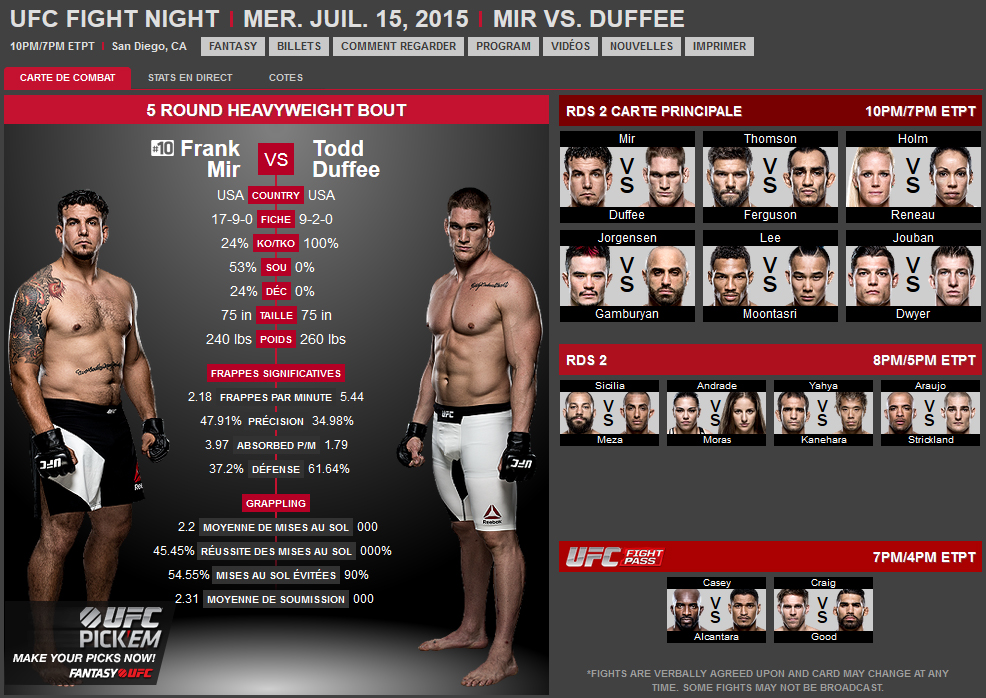 Todd Duffee (9-2) affrontera Frank Mir (17-9) à l’UFC Fight Night 71 à San Diego. Todd est actuellement sur une série de trois victoires consécutives à l’UFC, respectivement contre Neil Grove, Philip De Fries et Anthony Hamilton.