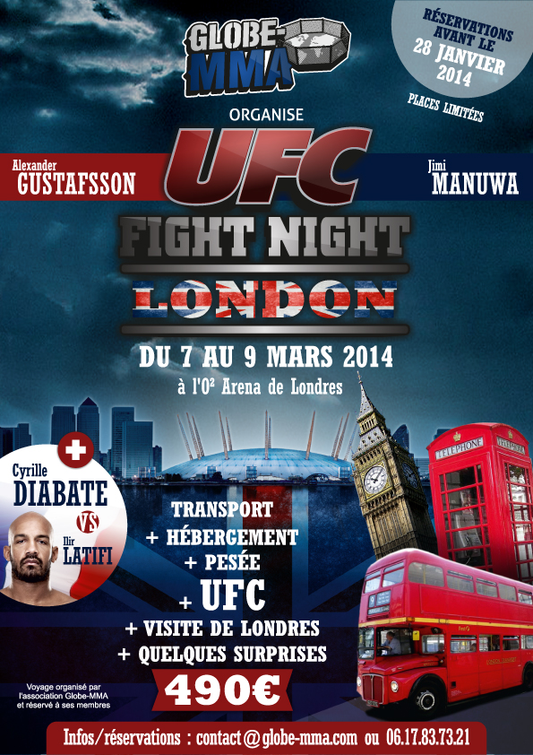 Si vous souhaitez venir à Londres pour encourager Cyrille, sachez que c’est possible grâce à l’asso Globe-MMA qui organise un week-end de 3 jours outre-manche pour cet UFC qui s’annonce très bon ! (plus d’infos sur l’asso ici). Pour toute demande d’information, n’hésitez pas à me contacter par mail !