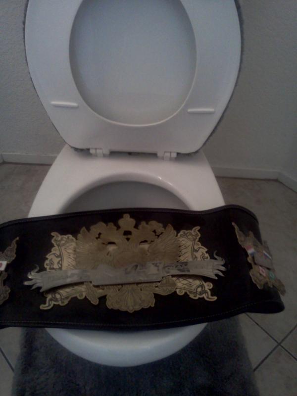 Et en plus il met sa ceinture au chiotte!!! Il en a vraiment plein le c.. c’est le cas de le dire!!!
