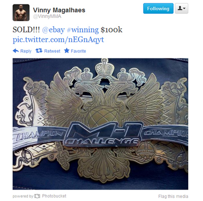 A l’issue de ça, Magaelhaes a décidé de mettre sa ceinture du M-1 en vente sur Ebay et de récolter une partie des fonds pour une association. Elle vient tout juste d’être vendue pour 100 000$ aux enchères…