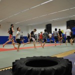 Bien que le club ne possède pas « sa propre salle », il y a tout de même un peu de matériel : gants, sacs pour frappes aux sols, casques, paos, cerceaux, boucliers muraux…et même un gros pneu pour frapper au marteau !