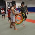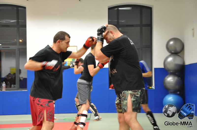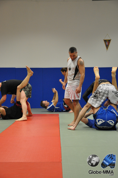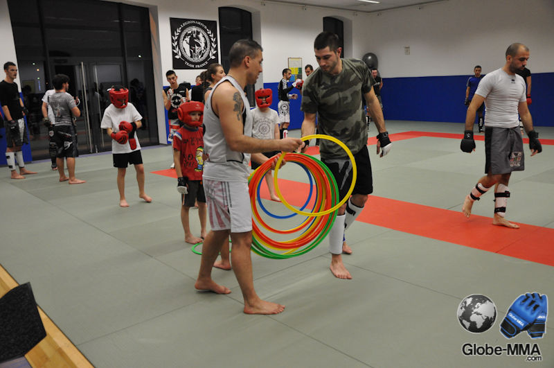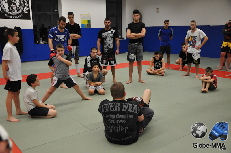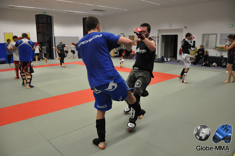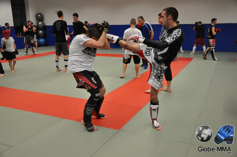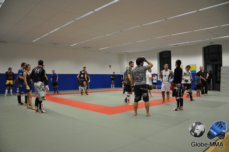 Alessio Sakara vient chaque année faire des stages au club et est très proches de ses élèves, jusqu’à même être l’homme de coin de ses élèves compétiteurs ! Ça doit faire bizarre pour l’adversaire…
