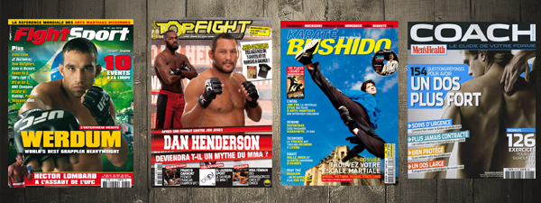 Je vous propose une sélection de 4 magazines ce mois-ci : Fightsport, Top Fight, Karaté Bushido et Coach. Pourquoi ces mags ? Les deux magazines références du MMA en France : Fightsport et Top Fight. Le magazine avec lequel j’ai grandi : Karaté Bushido, qui m’intéresse grâce aux sujets sur le pieds/poings, sur le MMA et sur les arts martiaux traditionnels (et oui il faut s’intéresser à tout quand on fait du MMA, tout peut être utile). Enfin, Coach qui est un hors série que je trouve très bien fait avec l’exhaustivité des informations sur les dossiers traités pour la musculation, la condition physique et la remise en forme.