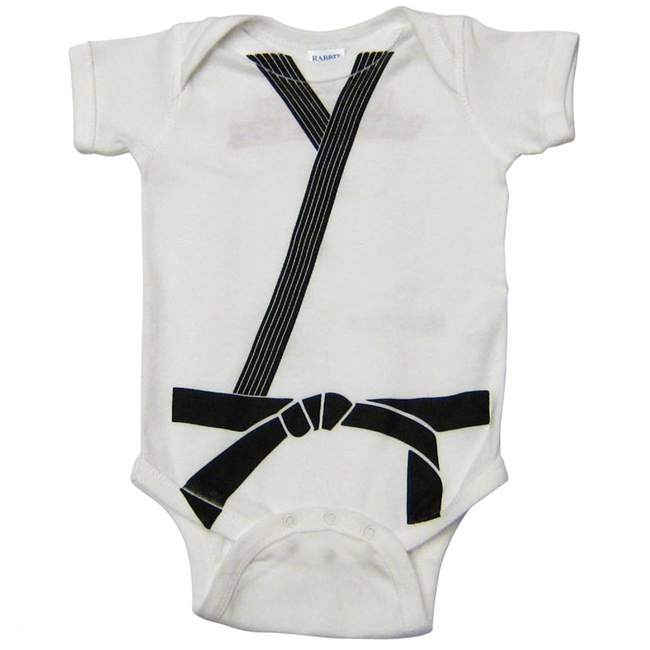 Tout le monde à le droit à ses vêtements de MMA ou de JJB, y compris les petits bouts de chou ! Le « Gi Onesie » est un body tout blanc qui ressemble à un Gi de Jiu-Jitsu Brésilien fabriqué par Fighter Warehouse. Trop mignon !