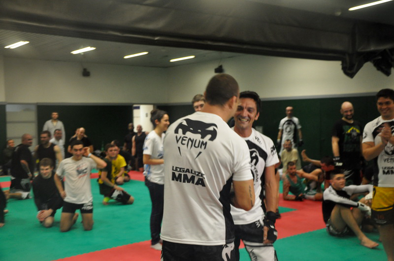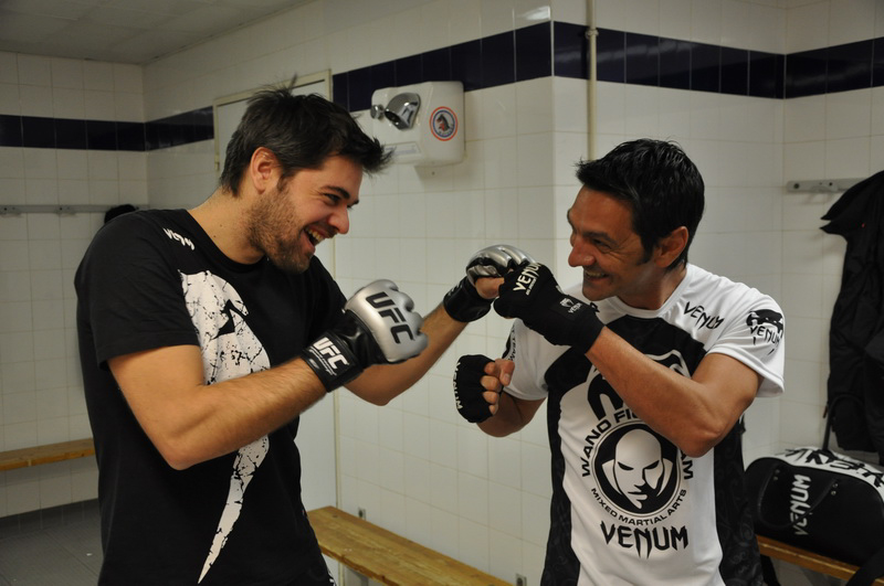 Fred et son équipe ont tourné une petite séquence « action » avec le brésilien. Là, il ne s’agissait pas de jeux vidéos mais bien du vrai personnage en 4D !! Échange de coups, takedown, ground and pound. Ça c’est de la réalité augmentée !!!!!