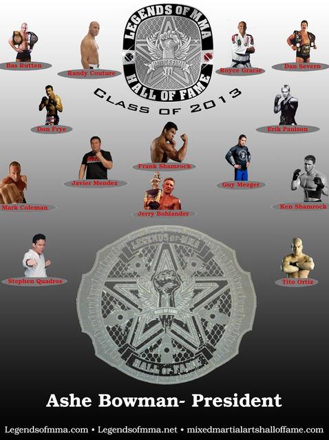 Et oui, il n’y a pas que l’UFC qui a son propre Hall of Fame ! Fondé en août 2013 à Las Vegas par Ashe Bowman, Président/CEO de Legends of MMA, cet organisme indépendant a pour but, au travers de son « Hall of Fame », d’honorer des athlètes et d’autres intervenants dans l’univers du MMA que ce soit pour leur contribution dans le sport à l’intérieur et à l’extérieur de la cage ou du ring.
