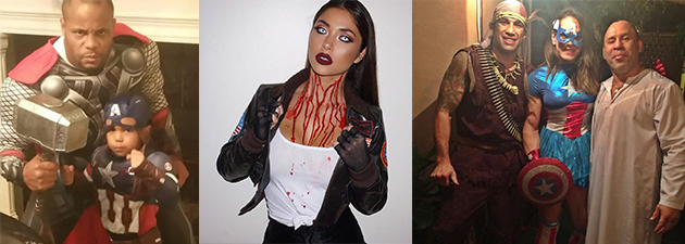 Fabricio Werdum en indien d’amérique, Gaby Garcia en Captain America et Wanderlei Silva en gourou.
