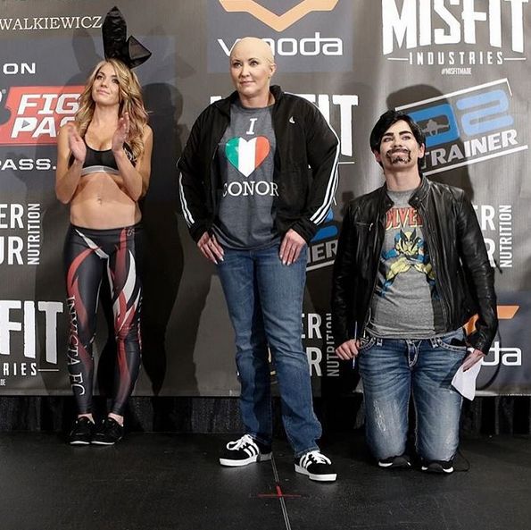 Shannon Knapp, la présidente de l’Invicta déguisée en Dana White et Julie Kedzie en Joe Silva. LOL !!!