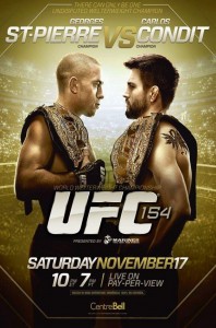 Voici un nouvel épisode d’une durée de 1h15 où nous revenons sur cet UFC 154 qui a eu lieu à Montréal ce week-end au Centre Bell mettant en vedette le combat déjà mythique entre Georges St-Pierre et Carlos Condit.