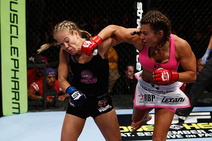 – Elle fait ses début à l’UFC lors du TUF 17 Finale pour son combat contre Cat Zingano. Bien que Miesha remporte les 2 premiers rounds, elle se fait surprendre au 3ème round et perd par TKO. Elle et Cat remportent le bonus du Combat de la Soirée.