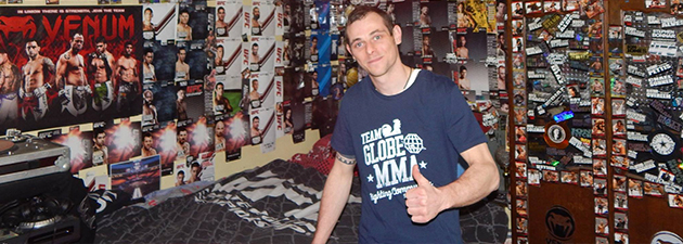 Après le portrait d’Yvon, c’est au tour de Martial de partager avec nous sa passion pour le MMA. Il fait parti de ses « hardcore » fans mordus par le MMA et qui collectionnent tout se qui touche de près ou de loin à l’univers MMA : figurines, posters, affiches… Il fait partie de l’association Globe-MMA et vit en région parisienne.