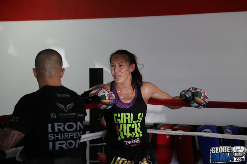 A la fin de son entrainement nous avons pas mal discuté. Cris est vraiment une personne que j’apprécie beaucoup, elle est douce et gentille. On a parlé de sa carrière, de ce qu’il se passait tout autour de Ronda, Dana White etc. De sa vie aux USA depuis 4 ans et de plein d’autres choses encore. Je lui souhaite vraiment plein de bonnes choses pour la suite de sa carrière !!