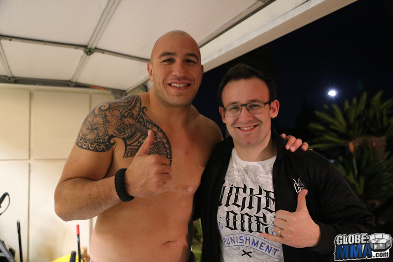 10h30 : Rendez-vous avec Royler Gracie pour une interview durant laquelle il évoqua son prochain combat au Metamoris 3 contre Eddie Bravo. Il s’agit de sa revanche, 11 ans plus tard, après avoir perdu à la grande surprise de tous en 1/4 de finale à l’ADCC. J’étais plus qu’heureux de rencontrer cette légende du Jiu-Jitsu brésilien, fils d’Helio Gracie, 7ème dan de JJB, quadruple champion du monde de JJB et seul homme a avoir remporté 3 ADCC d’affilé !