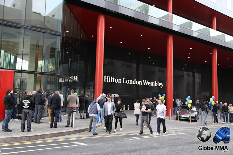 14H : Je file du côté de la Wembley Arena, plus précisément au Hilton, pour retrouver les amigos de No Contest, Martial Spirit et Octogon Podcast, et quelques français qui ont fait le déplacement jusqu’ici.