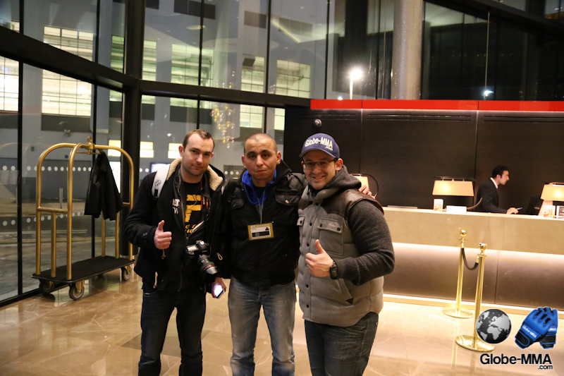 Arrivé dans l’hôtel, j’ai pu croiser pas mal de monde comme l’équipe de Pride or Die, Vincent Parisi qui venait juste d’arriver pour ensuite aller commenter la soirée sur RTL9, Romain de Vladusport, Johann de Karaté Bushido et Julien de Versus TV. Bertrand Amoussou, président de la CNMMA, avait également fait le déplacement jusqu’ici.