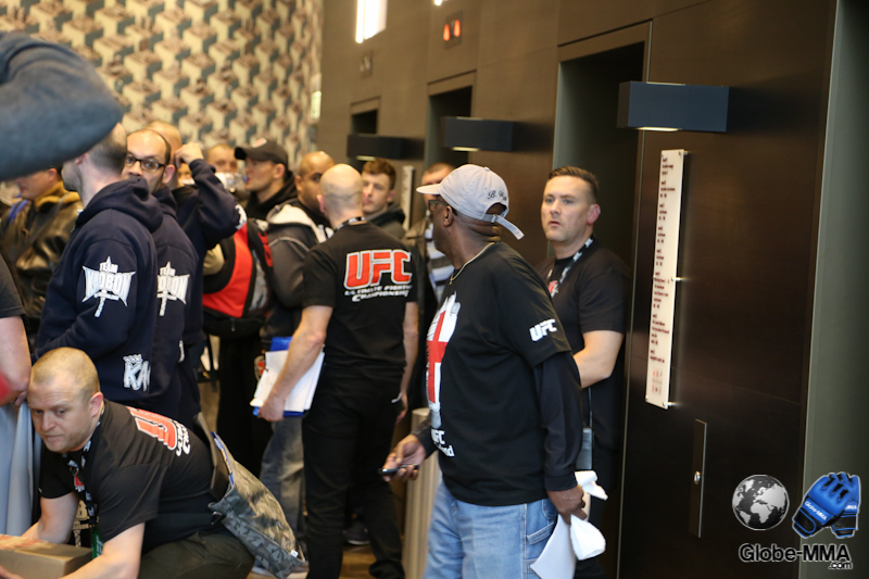 On a pu croiser dans le hall de l’hôtel, le combattant qui devait affronter Cub Swanson initialement : Denis Siver, qui fut remplacé par Dustin Poirier ce soir là.