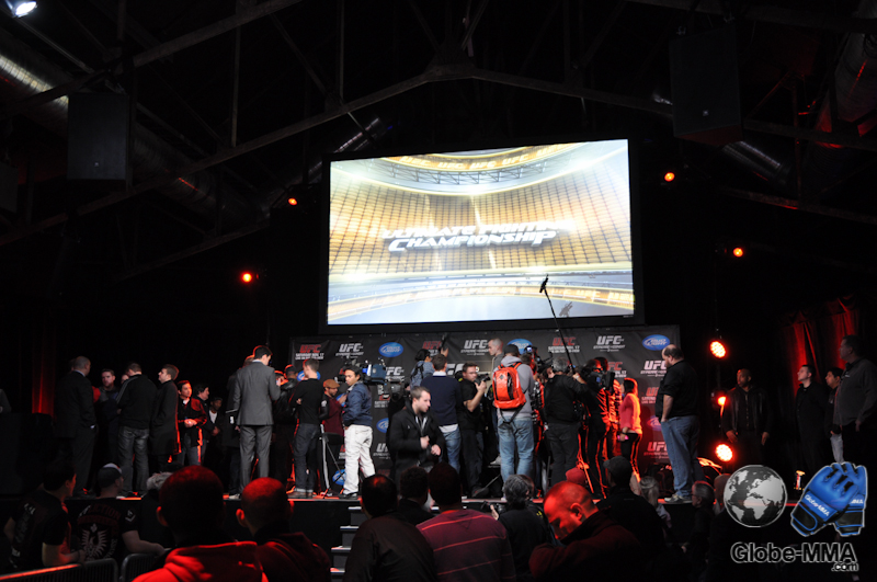 13H : Je me dirige vers le New City Gas où la pesée a lieu. Il y a déjà pas mal de monde à l’extérieur faisant la queue. Il s’agit des membres de l’UFC Fight Club qui entrent avant le grand public et peuvent assister à la séance de questions/réponses avec Rory MacDonald.