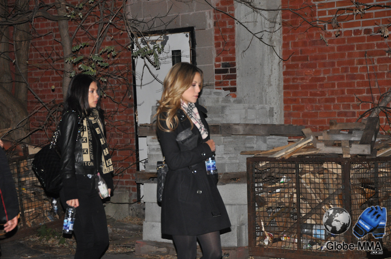 les octogon girls, Arianny et Brittney, se dirigent vers le bus pour rentrer à l’hôtel.