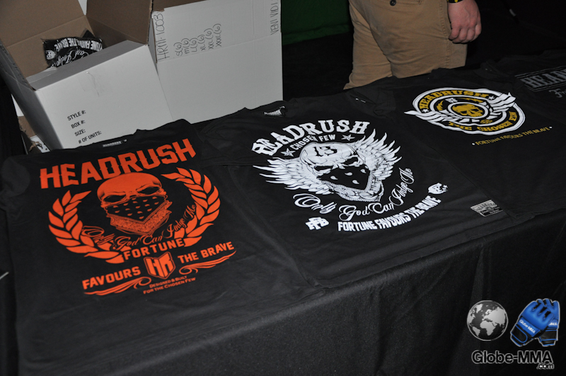 On pouvait se procurer quelques t-shirts Headrush, l’un des sponsors de Carlos Condit.