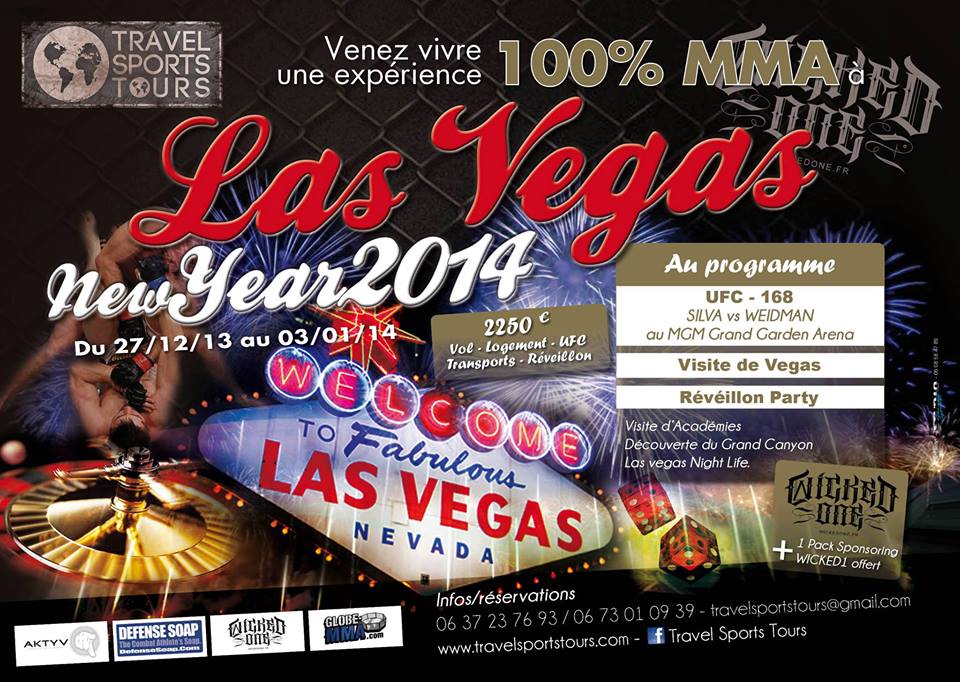 Si vous aussi vous voulez vivre une de ces expériences inoubliables 100% MMA, sachez que TST organise le nouvel an à Las Vegas pour assister à l’UFC 168. Les inscriptions se terminent très bientôt donc c’est le moment de réserver votre place si vous voulez faire partie du voyage :