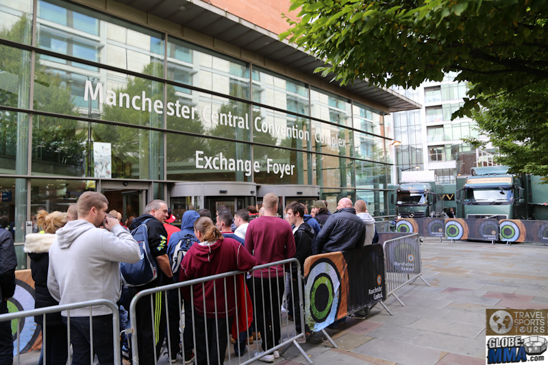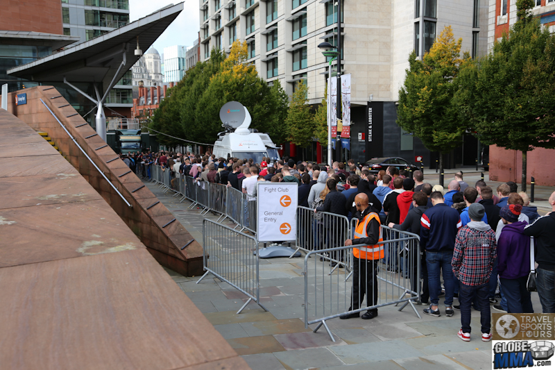 Une fois arrivés au Manchester Central, deux files sont mises en place : une réservée au « Fight Club Members » et une autre réservée au grand public.
