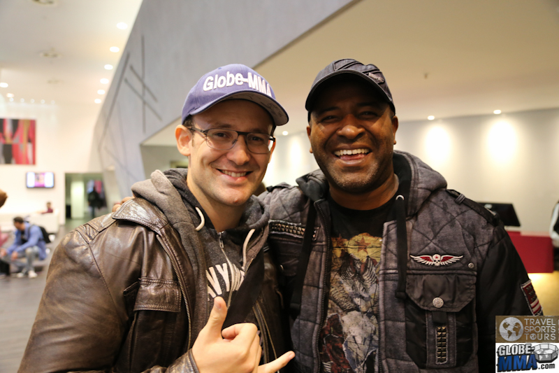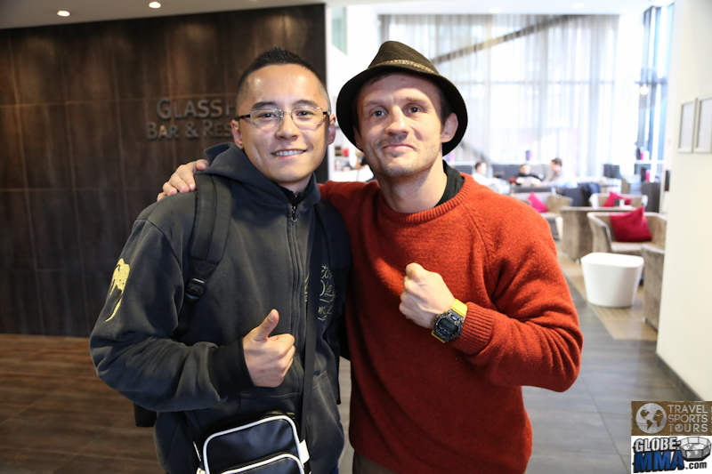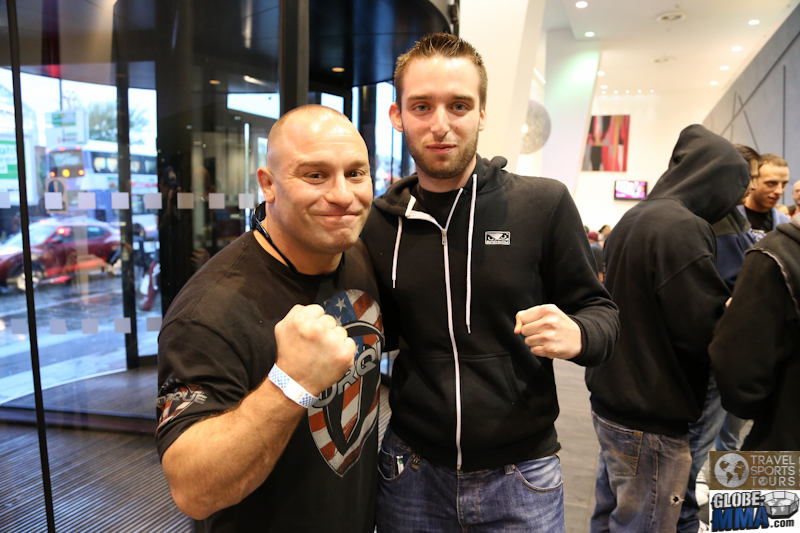 18H : Retour à l’hôtel des combattants pour faire de nouvelles rencontres comme ici Kevin en photo avec l’ancien champion des welterweight, Matt Serra !
