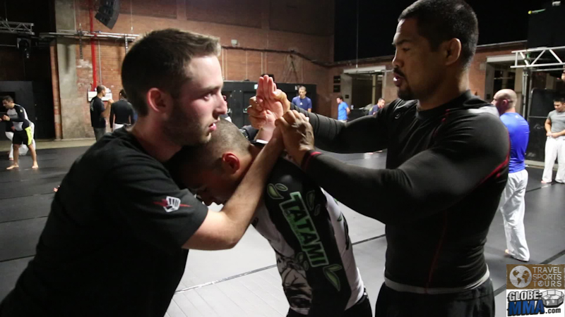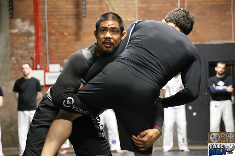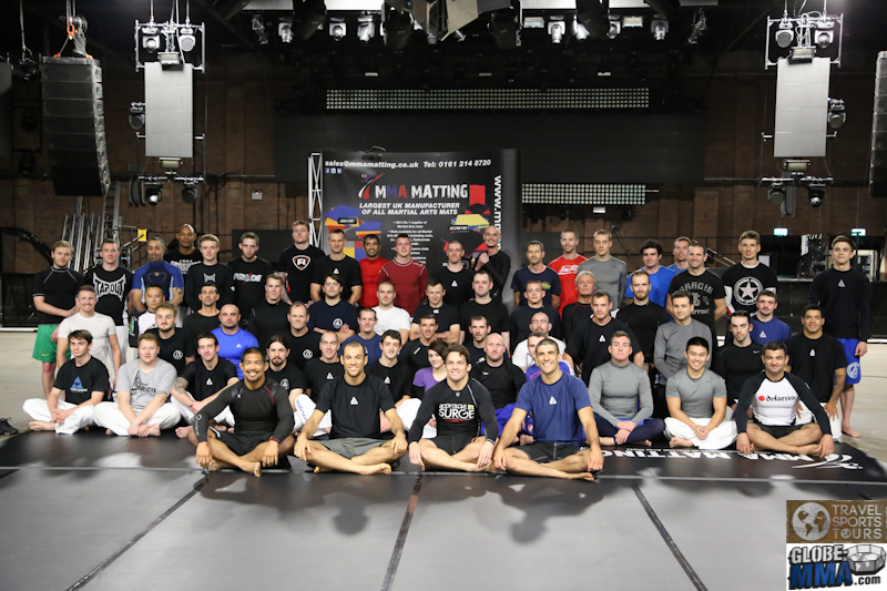 Dimanche 27 octobre, 11H30 : Après un bon petit déj, on prend le taxi pour nous rendre en banlieue de Manchester où avait lieu le stage exceptionnel avec Mark Muñoz, Jake Ellenberger et les deux frères Gracie : Rener et Ryron.