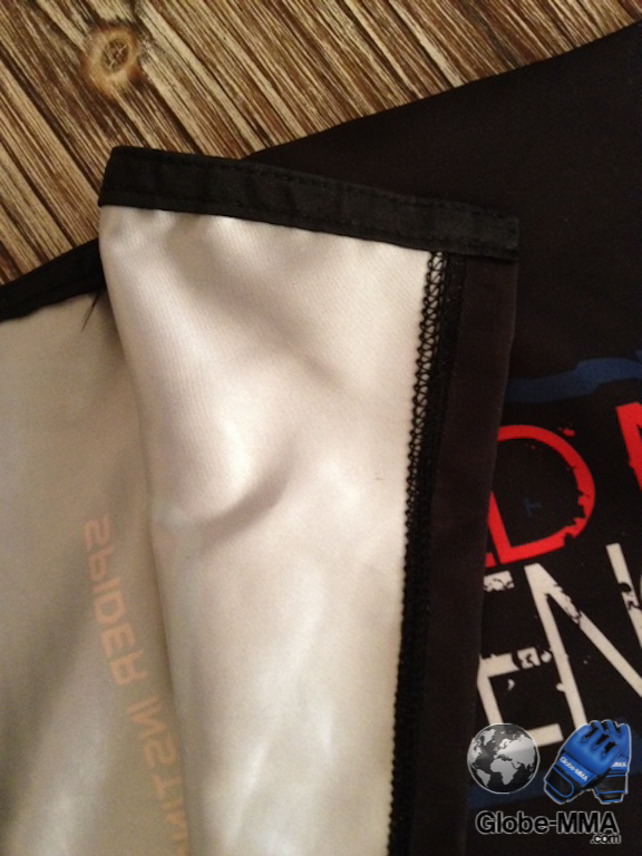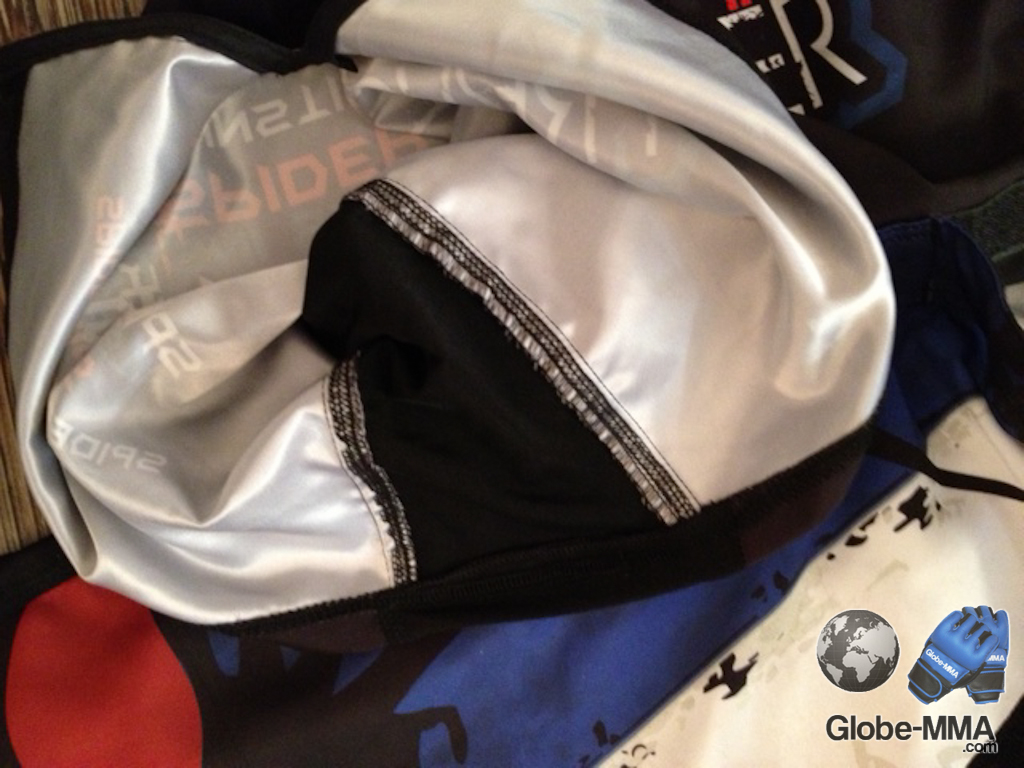 Avec le fightshort French Fighter, on a un bon produit. Primo, je trouve le design réussi. Les écritures « Mixed Martial Arts French Fighter », « Spider Instinct » et le drapeau français sur la jambe gauche en traces de peintures avec par dessus l’araignée. Les imprimés ne vont pas bouger tout de suite puisqu’ils sont intégrés dans le textile.