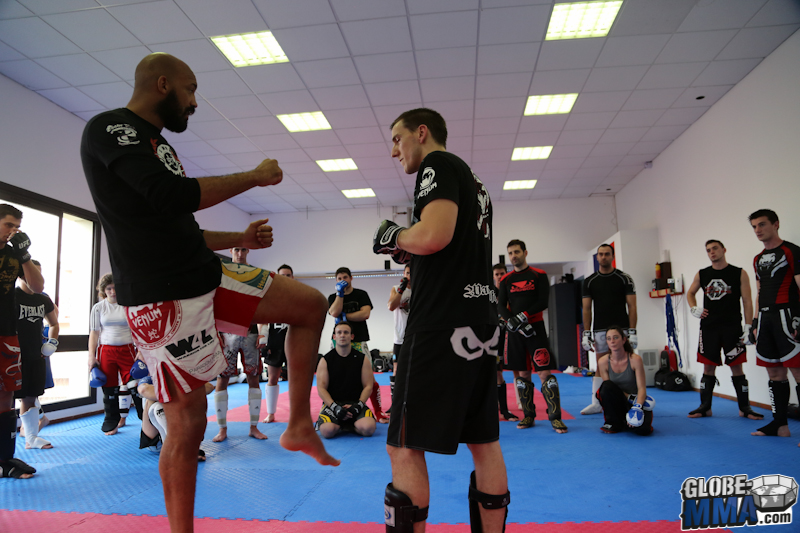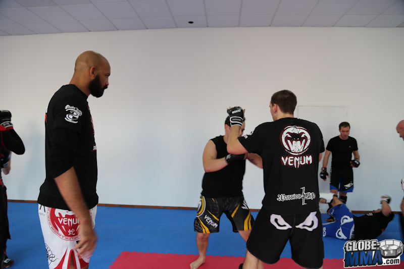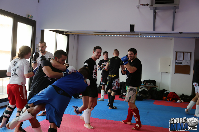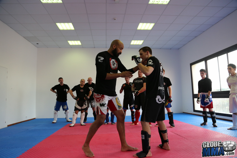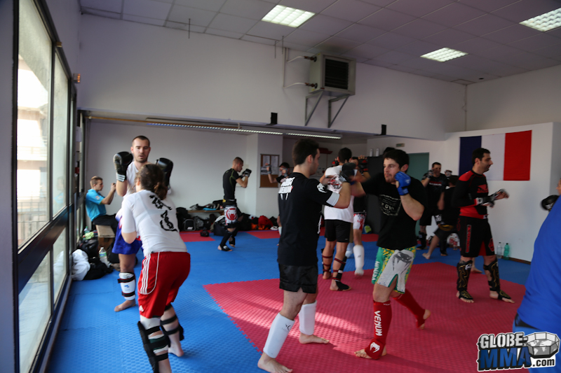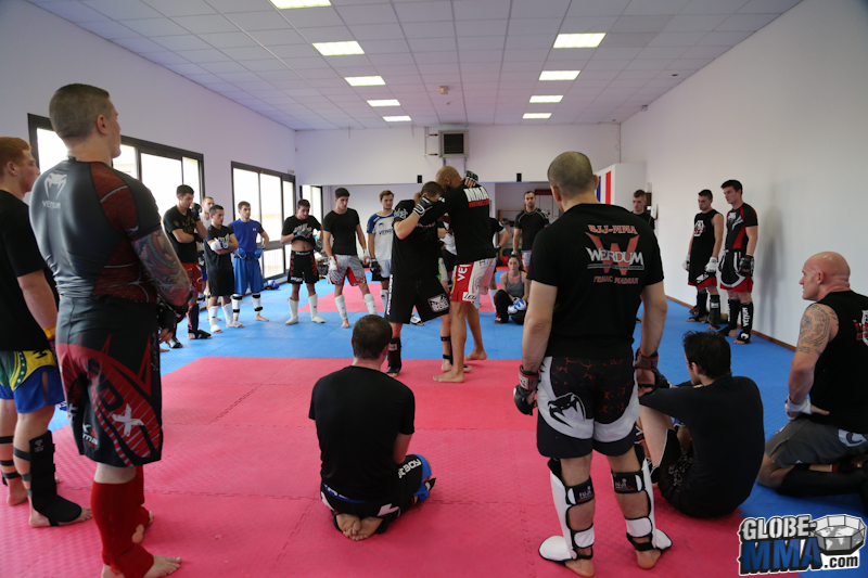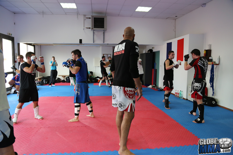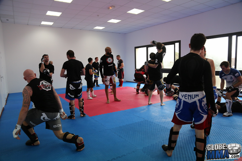 Les stagiaires du jour ont été prévenus à l’avance et ont ainsi pu s’échauffer grâce au coup de main d’Ismael Padavia, l’un de nos combattant de MMA français qui avait fait le déplacement depuis Bordeaux pour l’occasion.