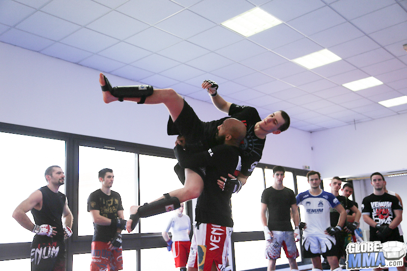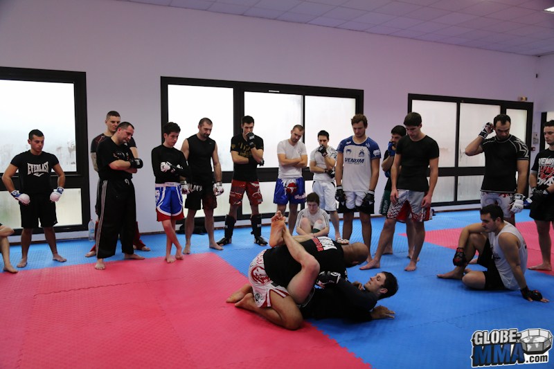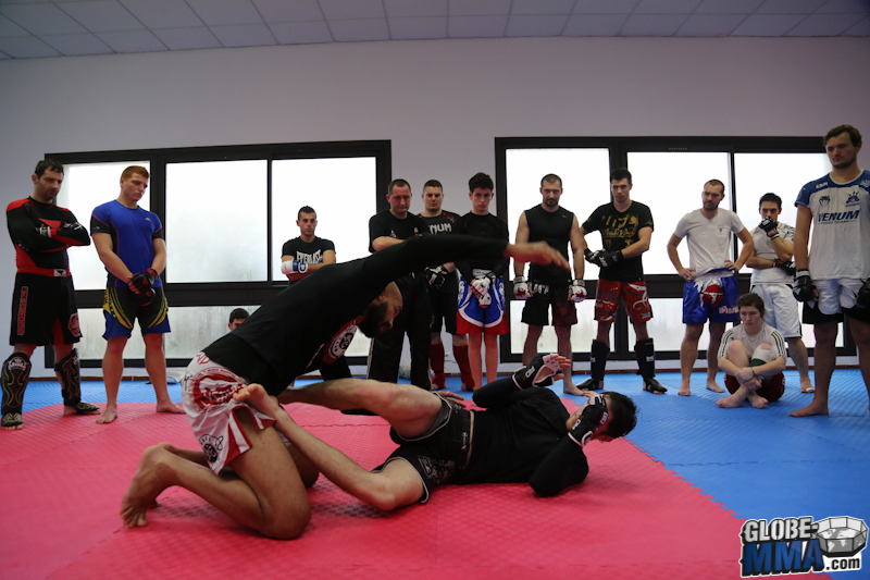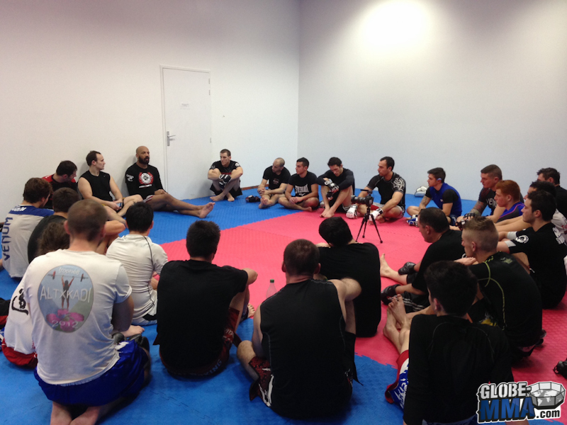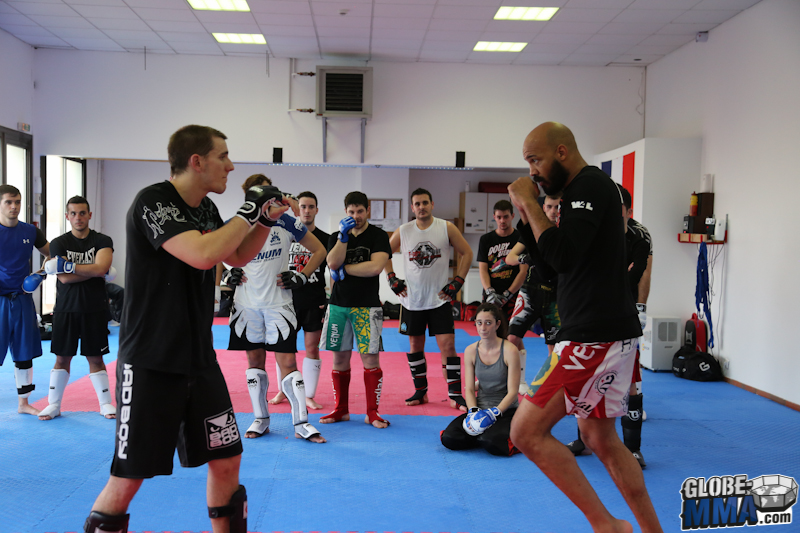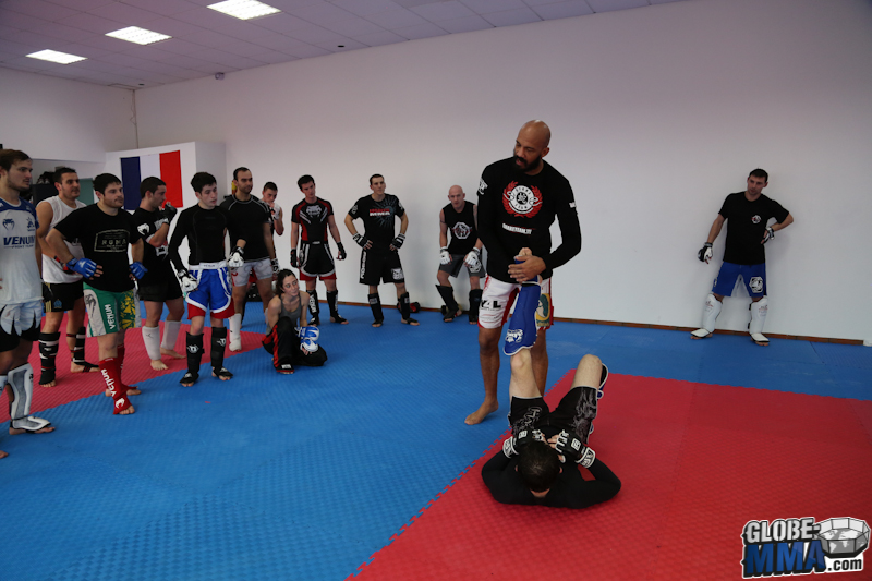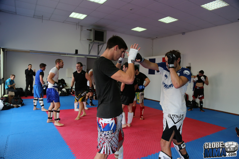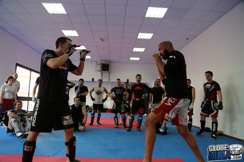 Les stagiaires du jour ont été prévenus à l’avance et ont ainsi pu s’échauffer grâce au coup de main d’Ismael Padavia, l’un de nos combattant de MMA français qui avait fait le déplacement depuis Bordeaux pour l’occasion.