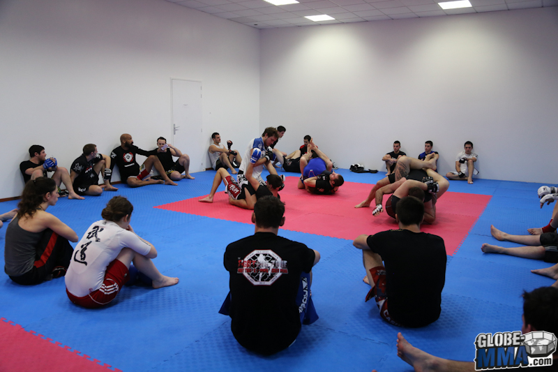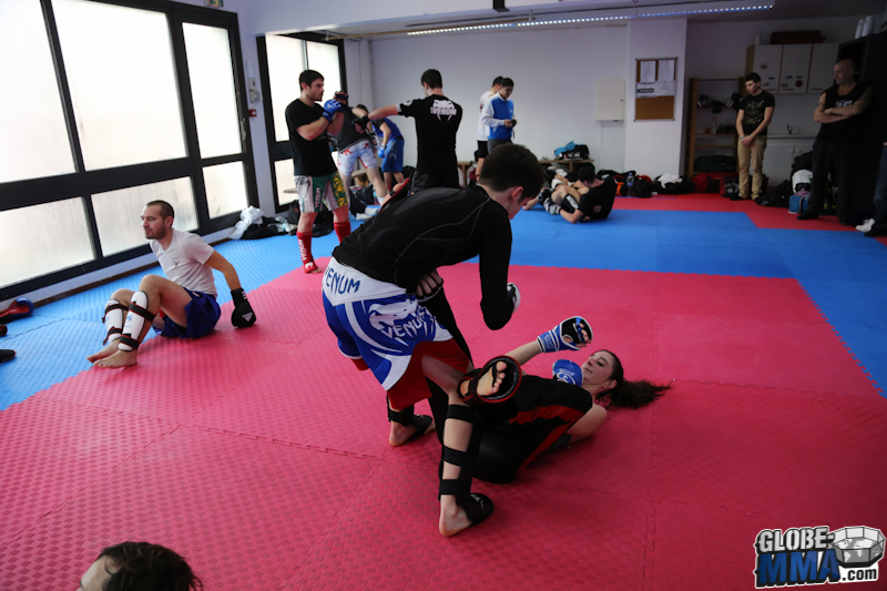 Il y avait également deux filles qui ont participé au stage en la présence de Delphine et Marion. L’une vient de la boxe et l’autre du judo. C’est sympa de voir que le MMA attire de plus en plus la gente féminine !
