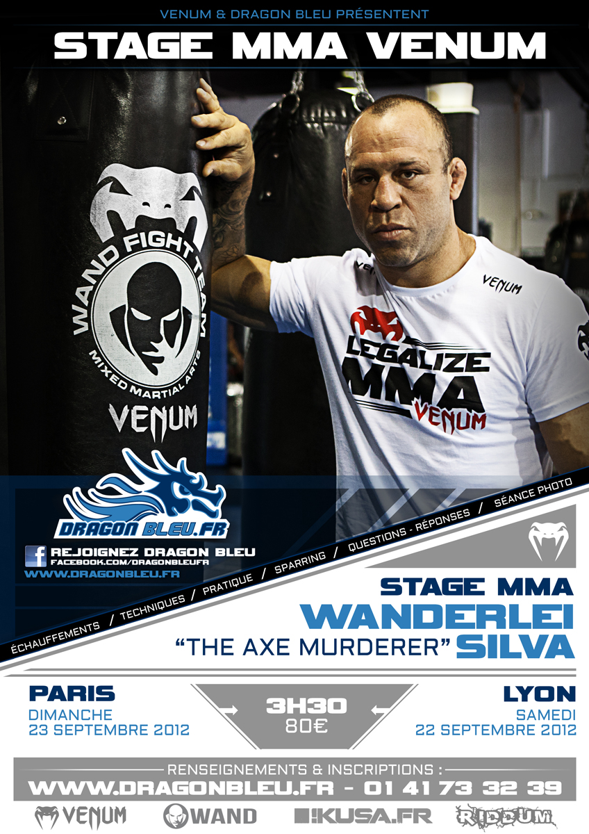 Ne manquez pas le nouveau stage de Wanderlei Silva à Paris et Lyon organisé par Venum et Dragon Bleu à la rentrée. Ce sera l’occasion pour nous tous de nous revoir…