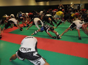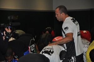 4H de stage avec l’une des plus grandes stars du MMA : Wanderlei Silva ! Nous étions un peu plus de 100 personnes à participer à ce stage organisé par Venum et Dragon Bleu au Levallois Sporting Club (92). Parmi les invités : Karl Amoussou, Bertrand Amoussou, Vincent Parisi. Beaucoup de Presse : AB, RTL9, Le Parisien, Fightsport, Globe-MMA, Canal+… C’est bon signe qu’autant de médias s’intéressent à nous !