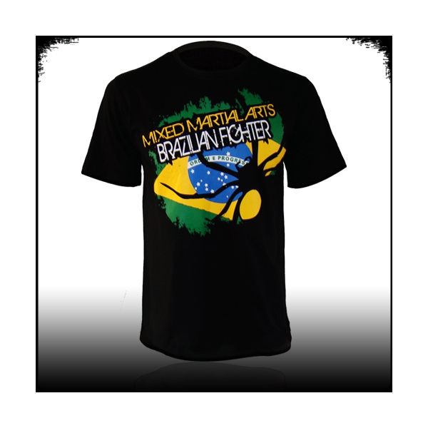 J’ai voulu faire un rapprochement entre ce t-shirt de chez Spider Instinct dont le logo est une veuve noire et Anderson Silva puisque 2 éléments font référence à ce combattant : le logo et le drapeau brésilien avec l’inscription « brazilian fighter ». Même s’il ne s’agit pas du t-shirt « officiel » que portera Silva, les aficionados du MMA pourront reconnaitre la subtilité et le porteront pour soutenir tous les combattants brésiliens au sens large tels que : Anderson Silva, Shogun, Wanderlei Silva, Werdum, JDS, José Aldo…