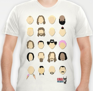 Le célèbre site américain de MMA, Cagepotato propose un t-shirt créé par Derek Eads assez original représentant différents acteurs du MMA ayant une pilosité particulière. Vous aurez reconnu entre autre : Chuck Liddell, Roy Nelson, Ben Henderson…