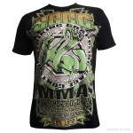 Le dessin est très travaillé. Il y a plusieurs éléments graphiques tels que l’octogone, le cobra attaquant la mangouste et des inscriptions des différentes disciplines martiales telles que le muay thai, le wrestling ou le brazilian jiu-jitsu. La police d’écriture façon Kremlin je trouve ça très original, ça rend bien.