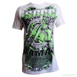 J’aime bien ce t-shirt car il symbolise l’opposition entre les styles de combat. Deux espèces différentes, deux morphologies distinctes, des attaques et des défenses qui leurs sont propres. Ça me rappelle les vraies oppositions de style que l’on retrouvait dans les premiers UFC…